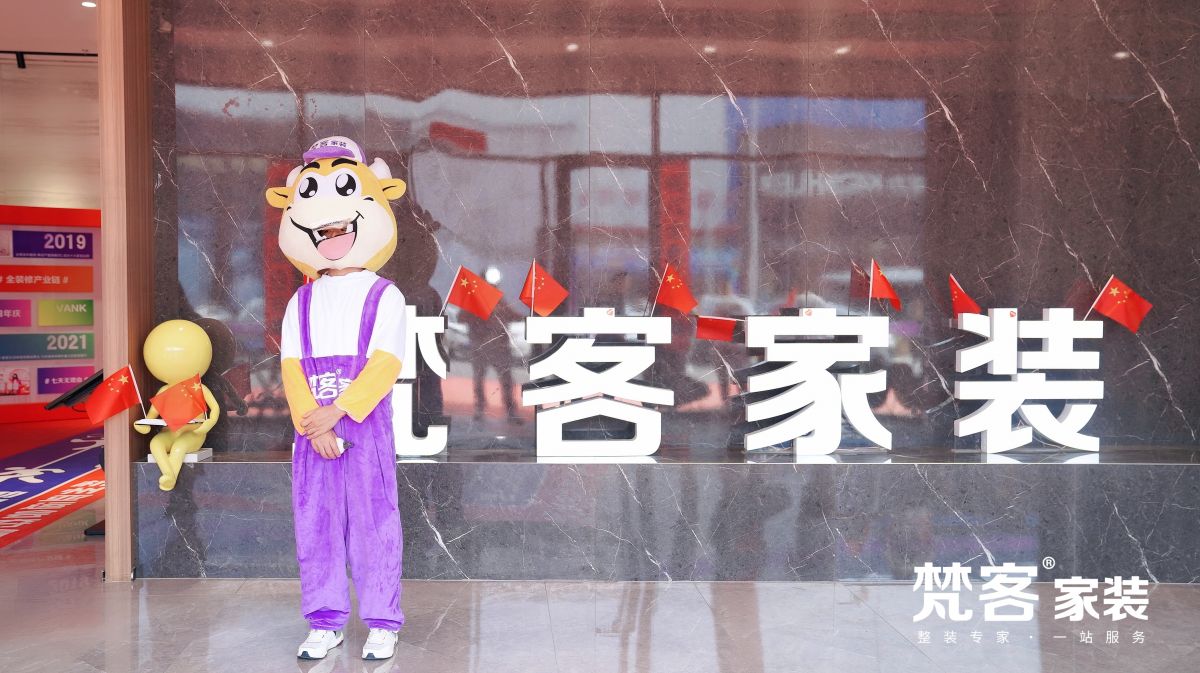 吉祥物手舉小紅旗,迎接業主朋友的到來。梵客家裝也為在國慶小長假簽約的業主朋友準備了鉅惠豪禮,不僅讓大家吃好喝好玩好,更要裝好房筑好家。