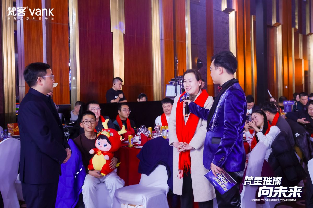 梵客集團(tuán)年會(huì)現(xiàn)場(chǎng)高朋滿座,貴賓云集,紫金大廳蓬蓽生輝。蒞臨本次年會(huì)的尊貴嘉賓有:中國(guó)湘商文化促進(jìn)會(huì)會(huì)長(zhǎng)伍繼延先生,北京湖南青創(chuàng)會(huì)創(chuàng)始會(huì)長(zhǎng)王欣榮先生,藍(lán)科集團(tuán)董事長(zhǎng)藍(lán)方力先生,國(guó)家品牌研究院院長(zhǎng)祝合良先生,北京廣播電視臺(tái)《生活+》欄目策劃人王宏女士,北京廣播電視臺(tái)《生活+》欄目副制片人田濤女士、王遠(yuǎn)女士,著名主持人、梵客家裝首席推薦官春妮女士,北京廣播電視臺(tái)《生活+》欄目主持人秦天先生,北京潤(rùn)元裝飾董事長(zhǎng)方祖民先生,杭州恒彩裝飾董事長(zhǎng)李青先生,上海T6國(guó)際設(shè)計(jì)董事長(zhǎng)曾令偉先生,濟(jì)南裝修之家董事長(zhǎng)張偉先生,德國(guó)寶格雷防火電線(中國(guó)區(qū))總裁鄭金存先生,德國(guó)高勒管道(亞太區(qū))總裁張金雨先生,遠(yuǎn)東集團(tuán)董事長(zhǎng)楊占江先生,北京歐派家居總經(jīng)理姚剛先生,華耐集團(tuán)馬可波羅事業(yè)部總經(jīng)理時(shí)鋒先生,北京尚品宅配全屋定制總經(jīng)理高申先生,北京九牧衛(wèi)浴總經(jīng)理陳增強(qiáng)先生,北京威能電器總經(jīng)理陳海志先生,北京創(chuàng)維電視總經(jīng)理田書(shū)長(zhǎng)先生,以及李靜董事長(zhǎng)在長(zhǎng)江商學(xué)院的校友們,湖南青創(chuàng)會(huì)的商會(huì)成員,中國(guó)獅子聯(lián)會(huì)的嘉賓。同時(shí)蒞臨活動(dòng)現(xiàn)場(chǎng)的還有來(lái)自各大知名材料廠家的供應(yīng)商嘉賓,以及來(lái)自北京廣播電視臺(tái)、搜狐家居、網(wǎng)易家居、新浪家居、北京商報(bào)、新京報(bào)、精品購(gòu)物指南、北京晚報(bào)、環(huán)球網(wǎng)家居、中國(guó)網(wǎng)家居、鳳凰網(wǎng)家居、財(cái)經(jīng)網(wǎng)家居、樹(shù)懶生活等權(quán)威媒體的尊貴嘉賓;來(lái)自京東、抖音、騰訊、小紅書(shū)、住小幫、百度、新浪微博、智迪互動(dòng)、優(yōu)居、博文視界、八方傳媒集團(tuán)等戰(zhàn)略合作伙伴的嘉賓代表。同時(shí),梵客集團(tuán)董事長(zhǎng)李靜先生攜全體高管和700名全體員工,共同出席本次年會(huì)。