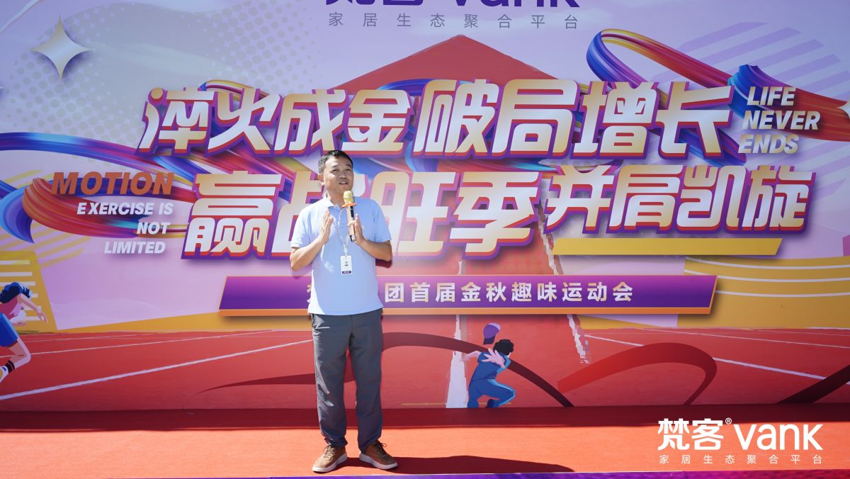 梵客集團董事長李靜先生首先為運動會致開幕詞:“9月是家裝旺季,也是梵客十八周年慶典之際,在這樣一個特殊時期,運動會的舉辦更是鼓舞了士氣。感謝大家的積極參與和投入,希望每個人在賽場上都能像平日一樣拼搏進取,超越自我、賽出風采!”