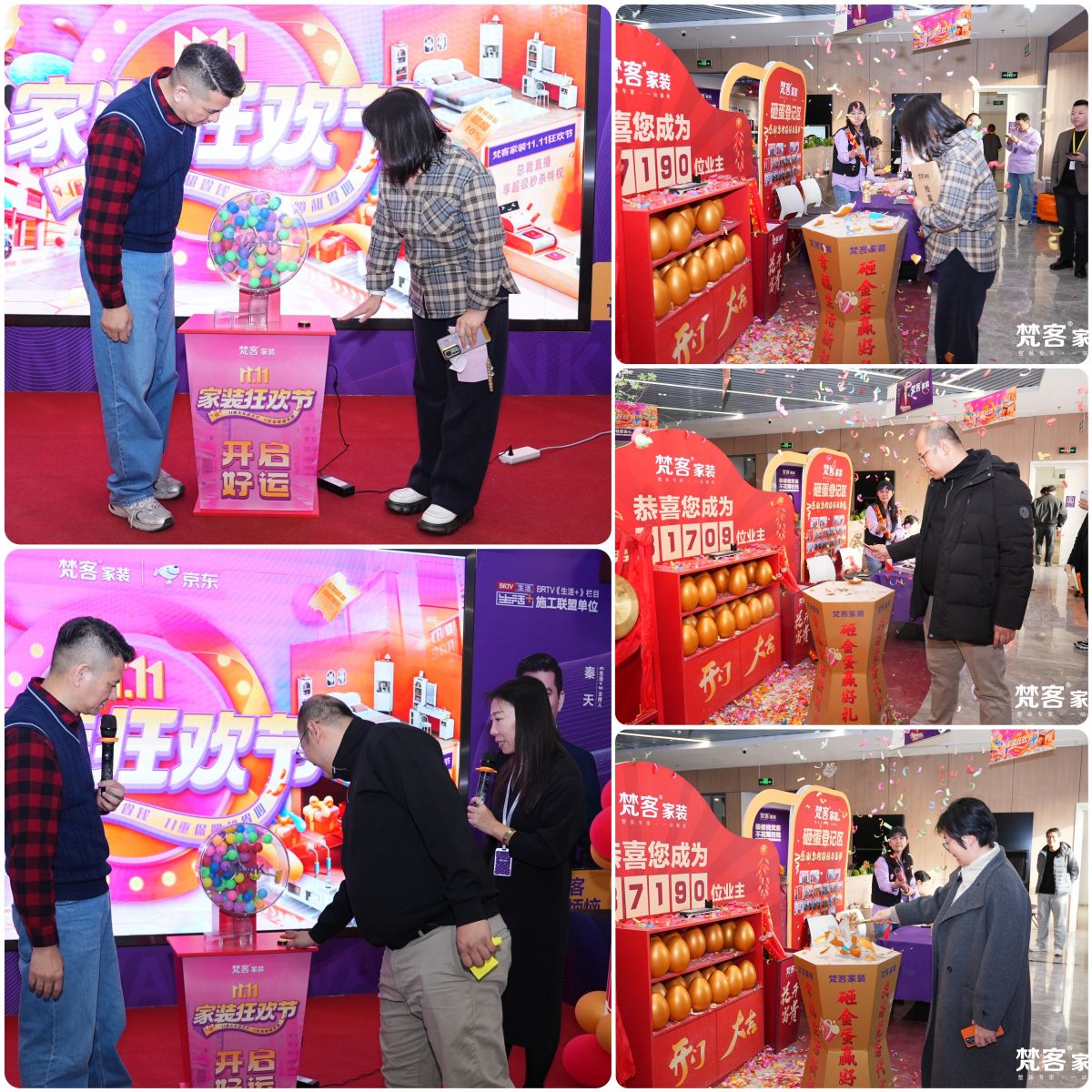 梵客家裝狂歡節,業主不僅享受到好品質好服務好價格的裝修,還在抽獎區、砸金蛋區收獲了額外的驚喜,冰箱彩電洗衣機空調熱水器等大家電、生活日用小電器…讓贈禮一步到位。